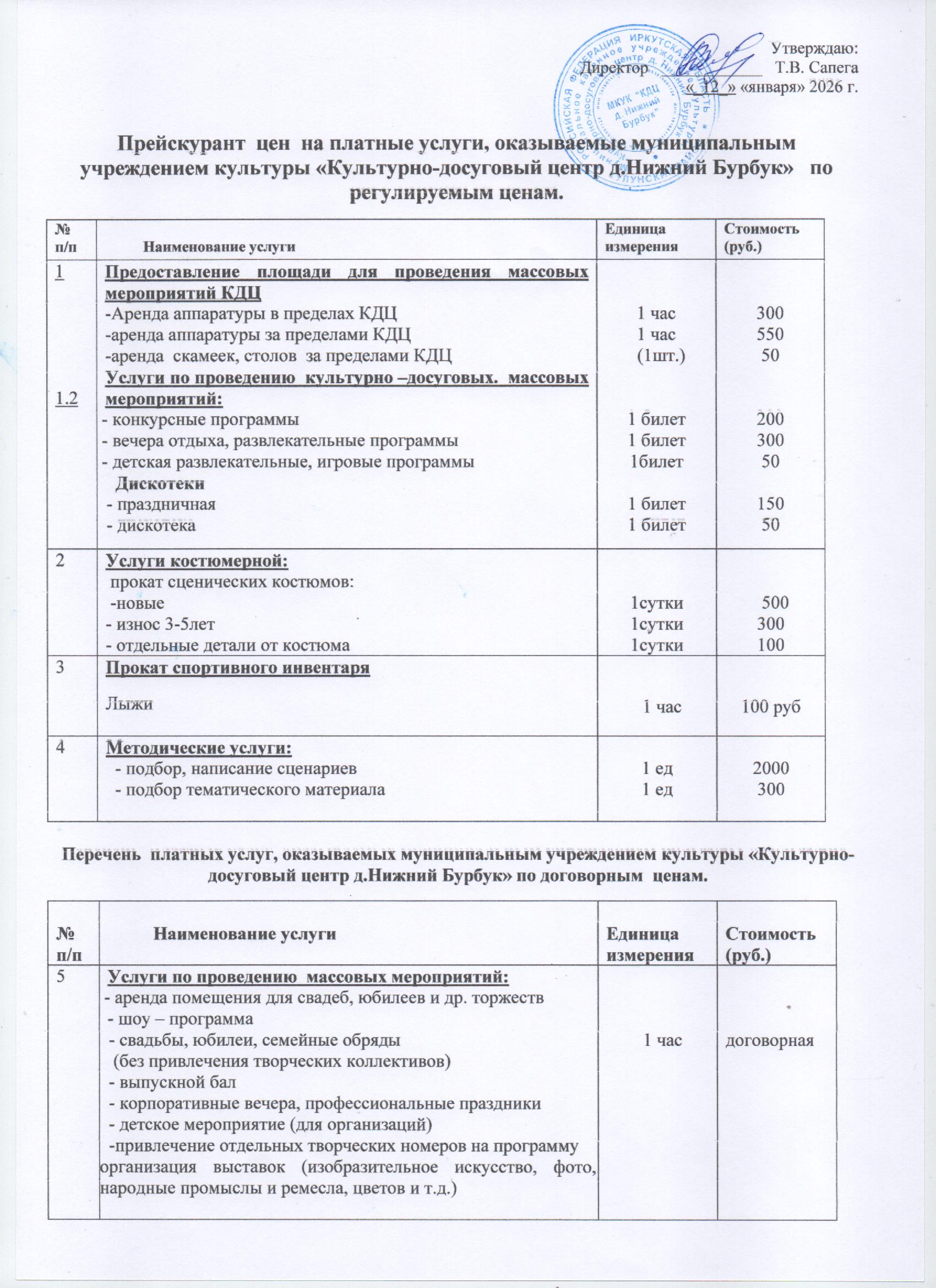Прейскурант цен на 2026 год